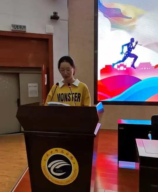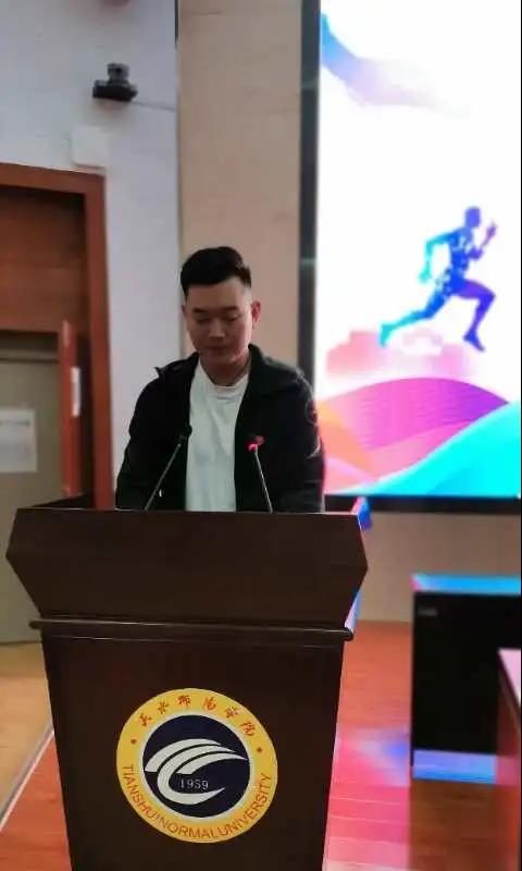 2020级运动训练一班朱欣雅同学代表新生做了表态发言。