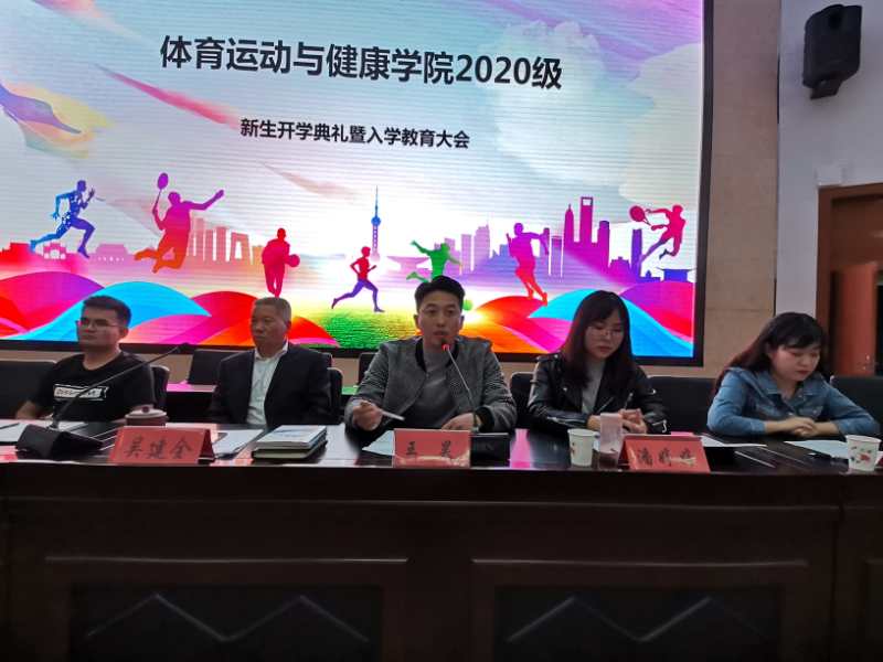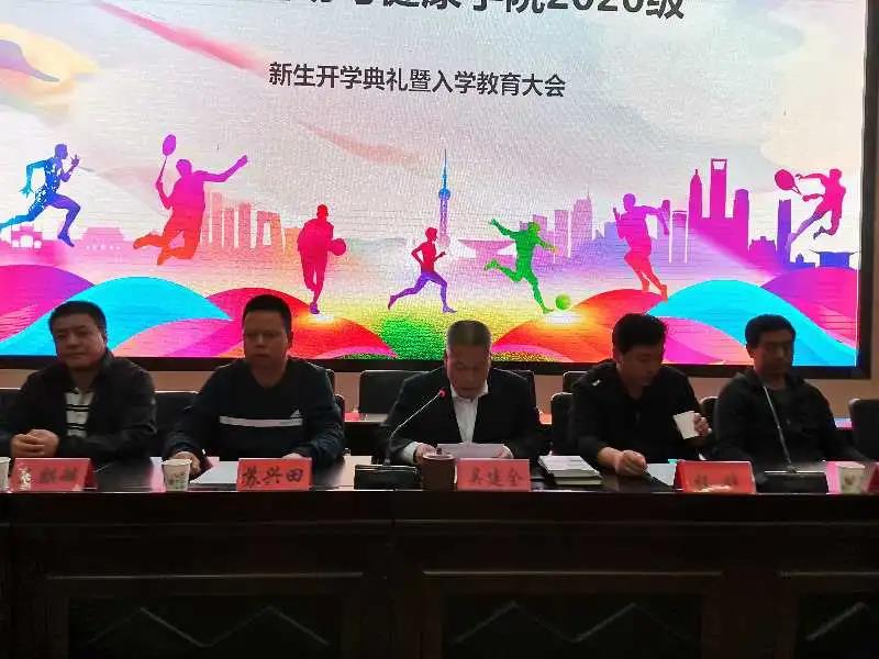 春华秋实,桂果飘香。为欢迎来自甘肃、广东、天津等19个省市(自治区)的215名新同学加入best365英国在线体育官网大家庭,9月23日晚在二号报告厅隆重举行2020级新生开学典礼暨入学教育大会。学院党总支副书记吴建全,副院长程晖,副院长苏兴田,运动训练系系主任王麒麟,社会体育指导与管理系系主任龚晨太,体育教育系系主任高海利,学院团委书记王昊,办公室副主任马慧琼,2020级各班班主任,教师代表段文义,辅导员以及2020级全体学生参加,典礼由学院党总支副书记吴建全主持。