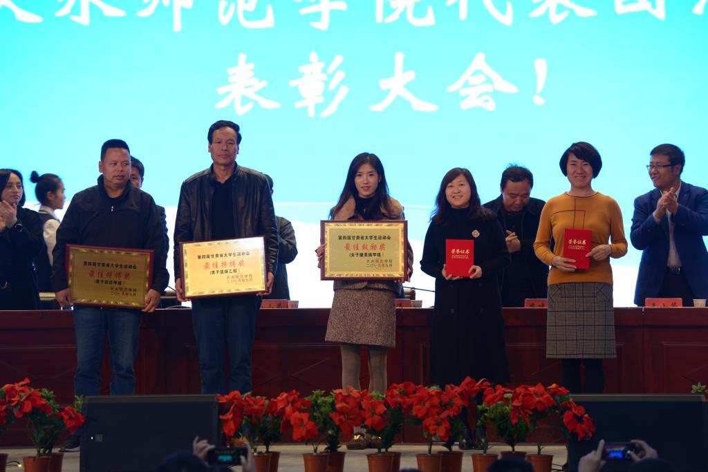 学校领导分别为受到表彰的“优秀教练员”、“优秀运动员”代表、“学校体育工作先进个人”、“学校体育教学优秀案例”获奖者、“优秀工作人员”及“优秀组织奖”和“特殊贡献奖”的单位和个人进行颁奖。