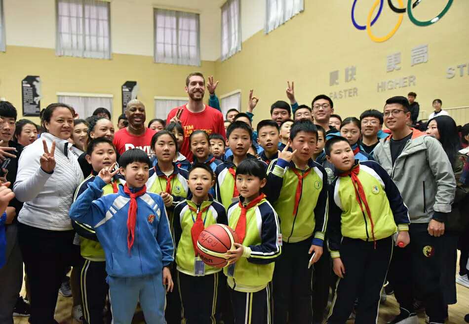 4月2日上午,在甘肃省美育教育促进会的促成下,“爱只因有你”美国NBA球星访问团走进天水师范学院综合体育馆,与我校大学生进行篮球文化交流活动。