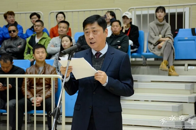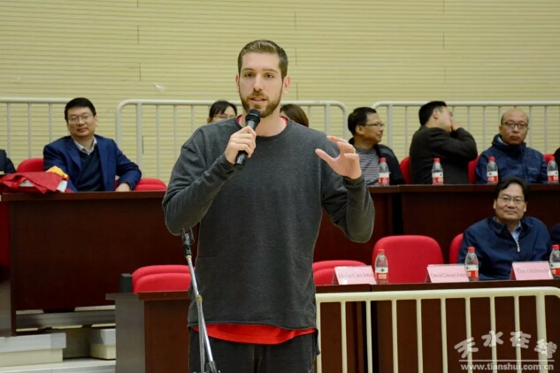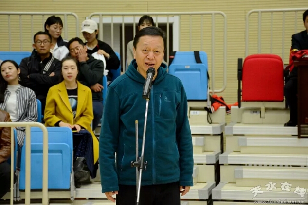 甘肃省美育教育促进会会长谢建华先生在致辞中,对天水师范学院为本次交流活动提供的大力支持和热情服务表示感谢。谢建华先生作为一个从天水走出去的人,他一致在做中外篮球促进交流工作,谢先生表示在今后的工作中,将带来更多的国际球类明星到天水师范学院,为家乡的体育教育事业做更多的贡献,也祝愿天水师范学院越办越好。