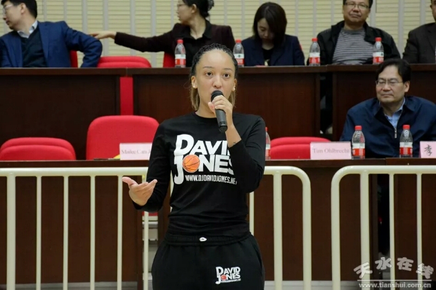 美国NBA职业球员蒂姆·奥布雷希特、青训教练大卫·琼斯、职业球员米莉·凯瑞琼斯三位职业球员依次发言。