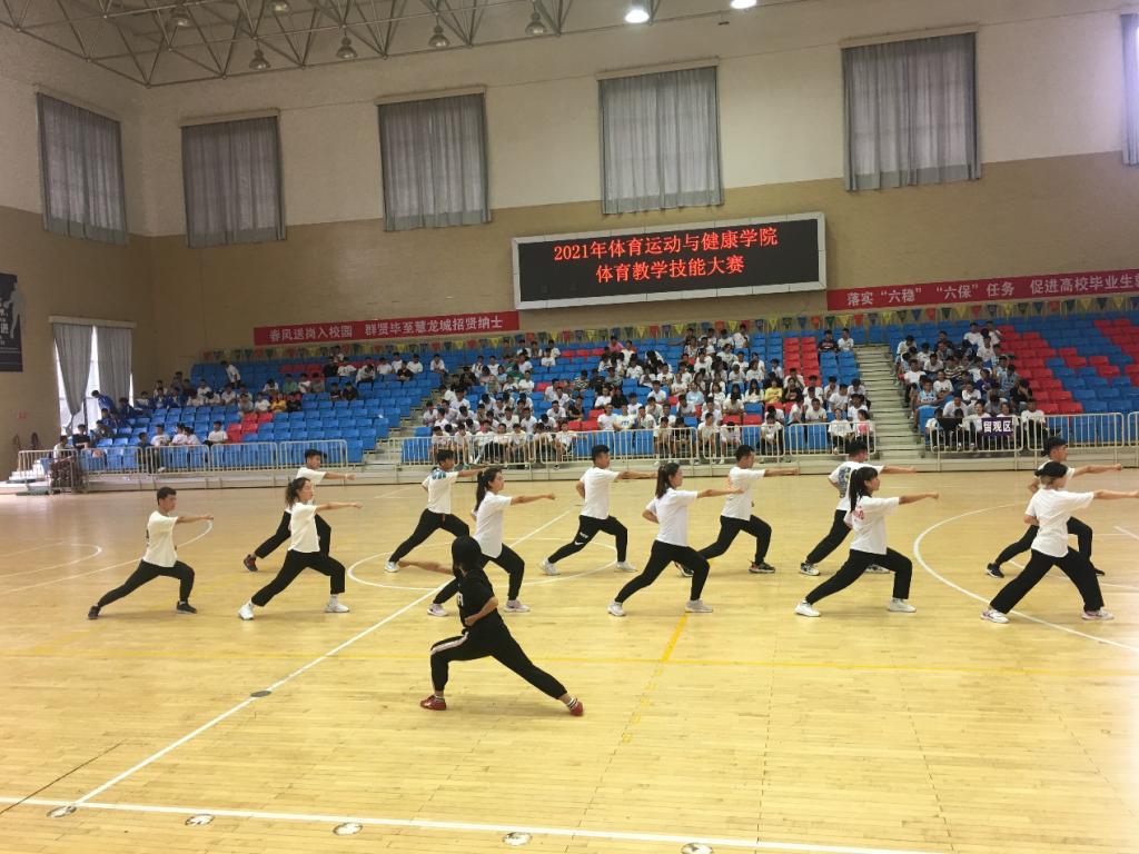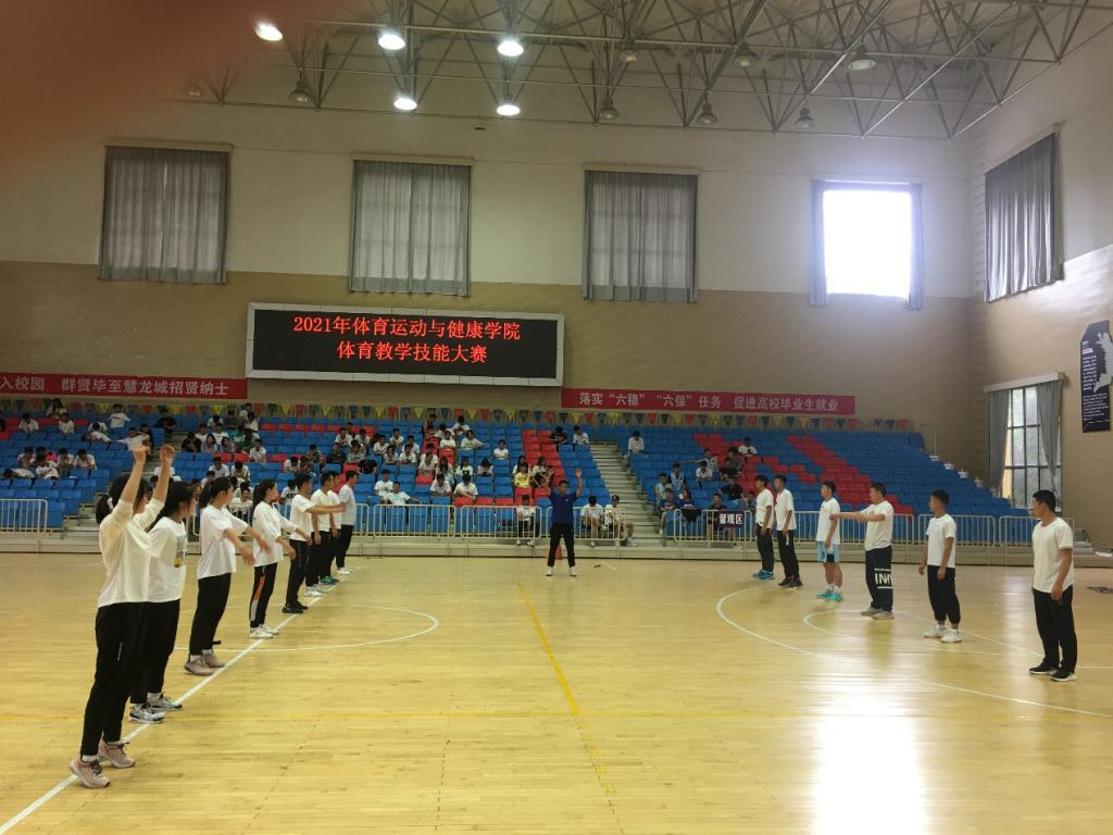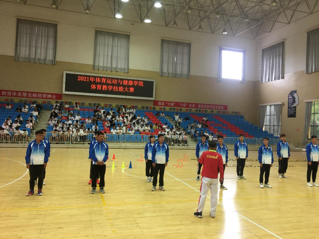 2021年7月3日下午,体育运动与健康学院在学校体育馆内举办师范类学生教学技能大赛。