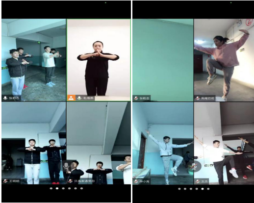 作为以实操为主的武术专业课,毛老师说线上教学面临巨大挑战。比如:腾讯会议直播时,教学内容虽以幅度较小的拳术套路为主,但传统劈挂拳放长击远、吞吐含放、大开大合的动作容易出境;再如因对动作不熟悉,加上视频界面小等因素,很多学生在学习中搞不清楚方向,下肢动作混乱......面对网络教学的重重困难,毛老师没有着急,一遍一遍耐心提示着。她说:特殊时期,学生的心是浮躁的,但我们的心必须是坚定、坚强的!