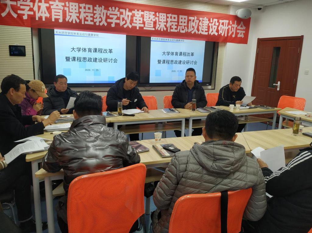为了缓解教师工作压力,提高教学质量,提高体育专业学生教学实践能力,丰富学生课外活动,提高学生运动成绩,增强学生身心健康,与会教师主要围绕课堂体育教学实施方法、课外体育活动、课外训练、运动竞赛等四个方面的改革展开激烈研讨,每位教师结合自己教学实际和经验纷纷发表自己的意见和建议,以刀刃向内的勇气剖析问题症结,提出整改措施,以“以本为本,以人为本”的理念建言献策,强化课程思政建设。并对大学体育课程成绩评价方法进行了研讨。