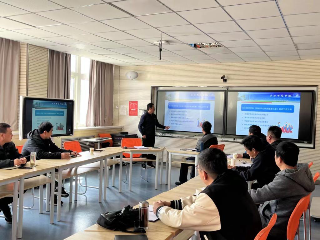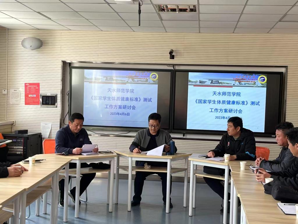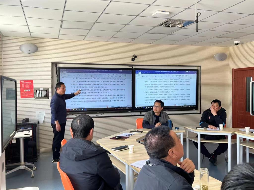 2023年4月6日下午,学院组织教师在2号教学楼304室召开学校《国家学生体质健康标准》测试工作方案研讨会。学院党总支副书记、系主任、公共体育教学部负责人和教工第一党支部党员参加研讨会。会议由公共体育教学部负责人主持。