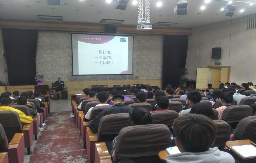 近日,为了提高我校篮球裁判员的业务水平,在天水师范学院学生第二十届暨教职工第十五届“园丁杯”篮球比赛开蔗之际,我们有幸邀请到兰州城市学院best365英国在线体育官网副院长、国家级裁判员、甘肃省执裁WCBA联赛裁判罗睿教授,苏波、张飞等国家级裁判员为我校篮协的裁判员们讲解裁判法。