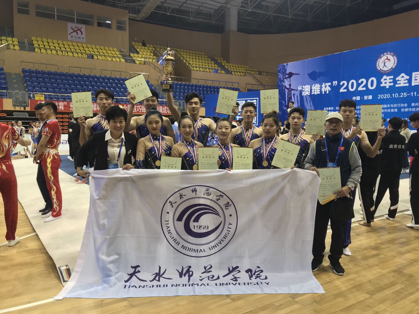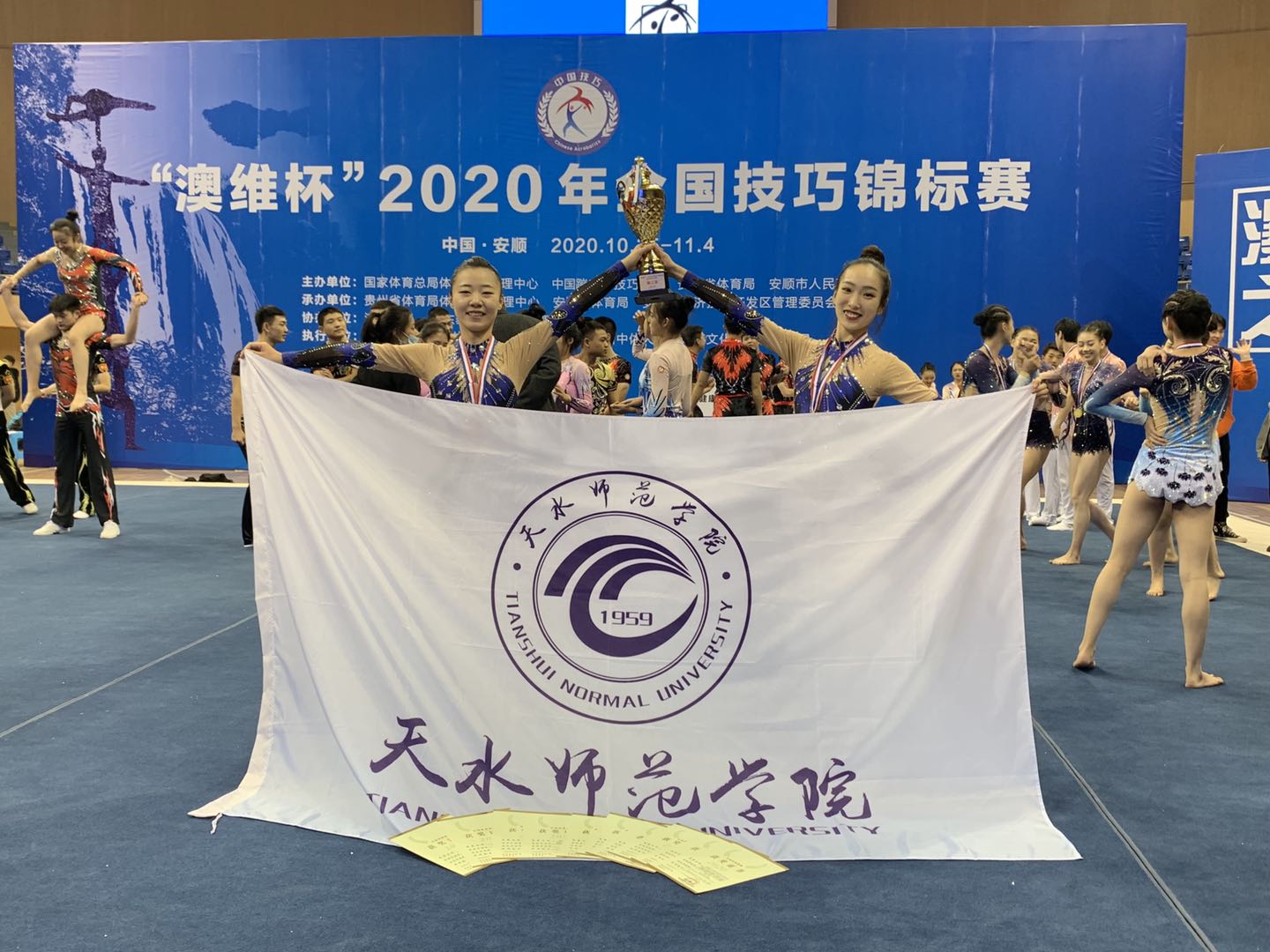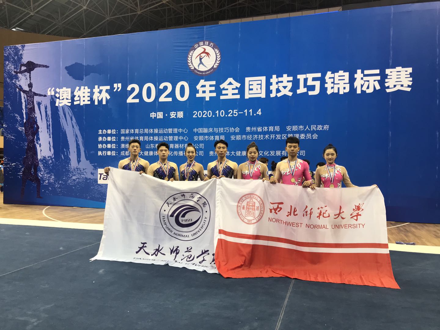 10月25日至11月4日,由国家体育总局体操运动管理中心、中国蹦床技巧协会、贵州省体育局、安顺市人民政府主办的2020“澳维杯”全国技巧锦标赛在贵州省安顺市隆重举行,共有来自全国10余个省市的71支代表队500余名运动员参赛。此次比赛中,我校与西北师范大学组成联队,参加3个项目的竞赛。