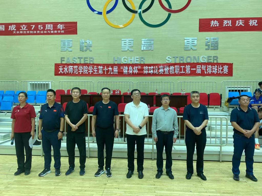 为庆祝中华人民共和国成立75周年、天水师范学院建校65周年。学校举办天水师范学院学生第十九届“健身杯”排球比赛暨教职工第一届气排球比赛,本次活动由校体委、校工会主办,体育运动与健康学院承办。比赛于9月27日晚圆满落幕。25支学生代表队和4支教职工代表队分五个组别参加比赛,赛事采用分组单循环及交叉淘汰赛制,共计举办了60余场比赛。