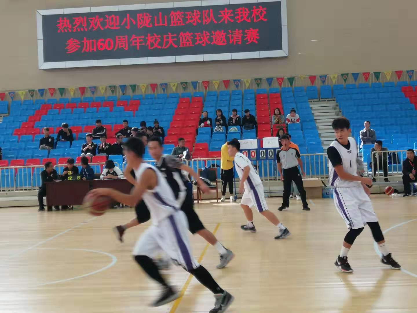 11号下午、12号下午在体育馆我校男子篮球队与小陇山林业局篮球队、昊峰集团篮球队打了两场比赛,给广大校友和来宾带来了欢乐和喜庆。